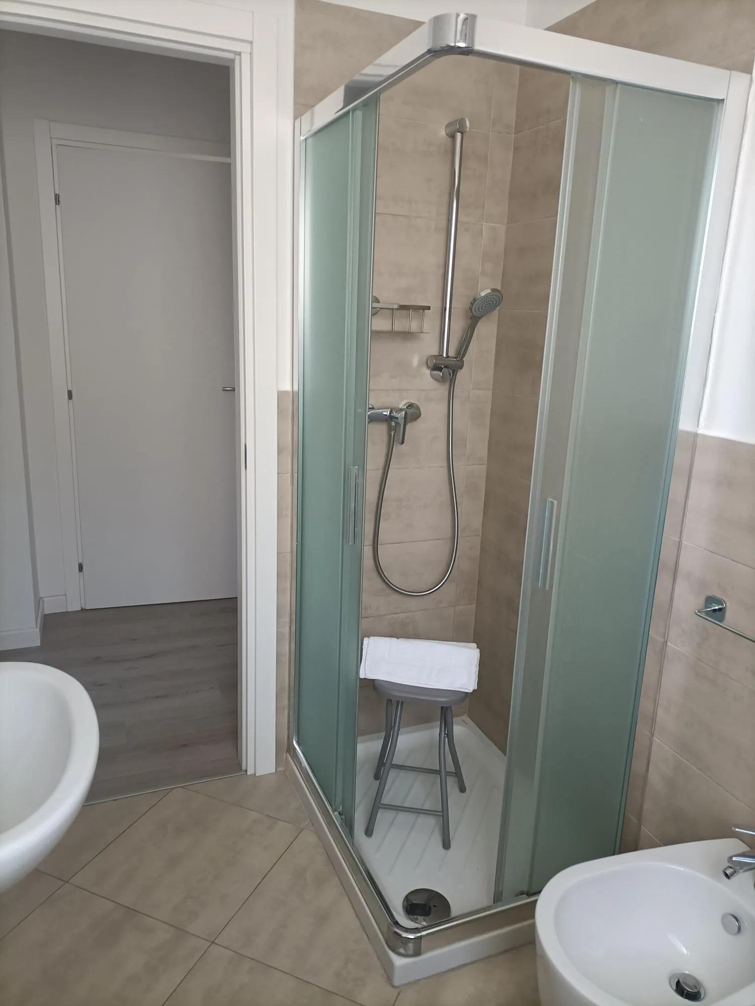 Il bagno è dotato di doccia, bidet, lavatrice, asciugacapelli e set di cortesia.