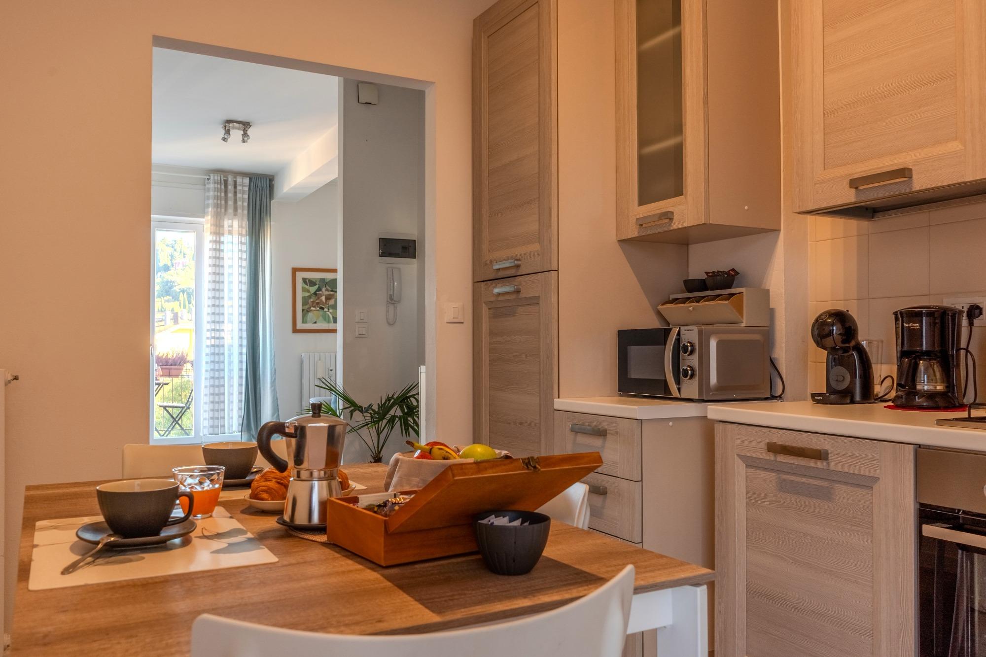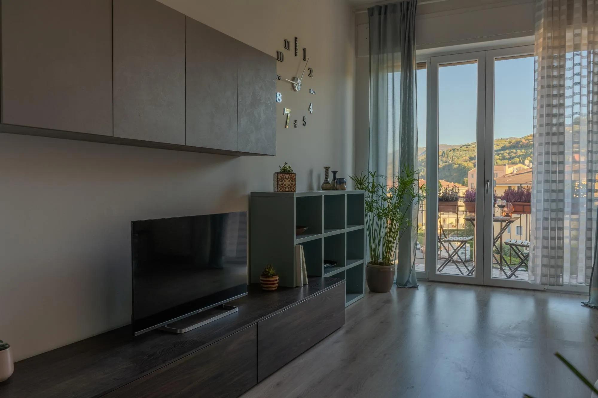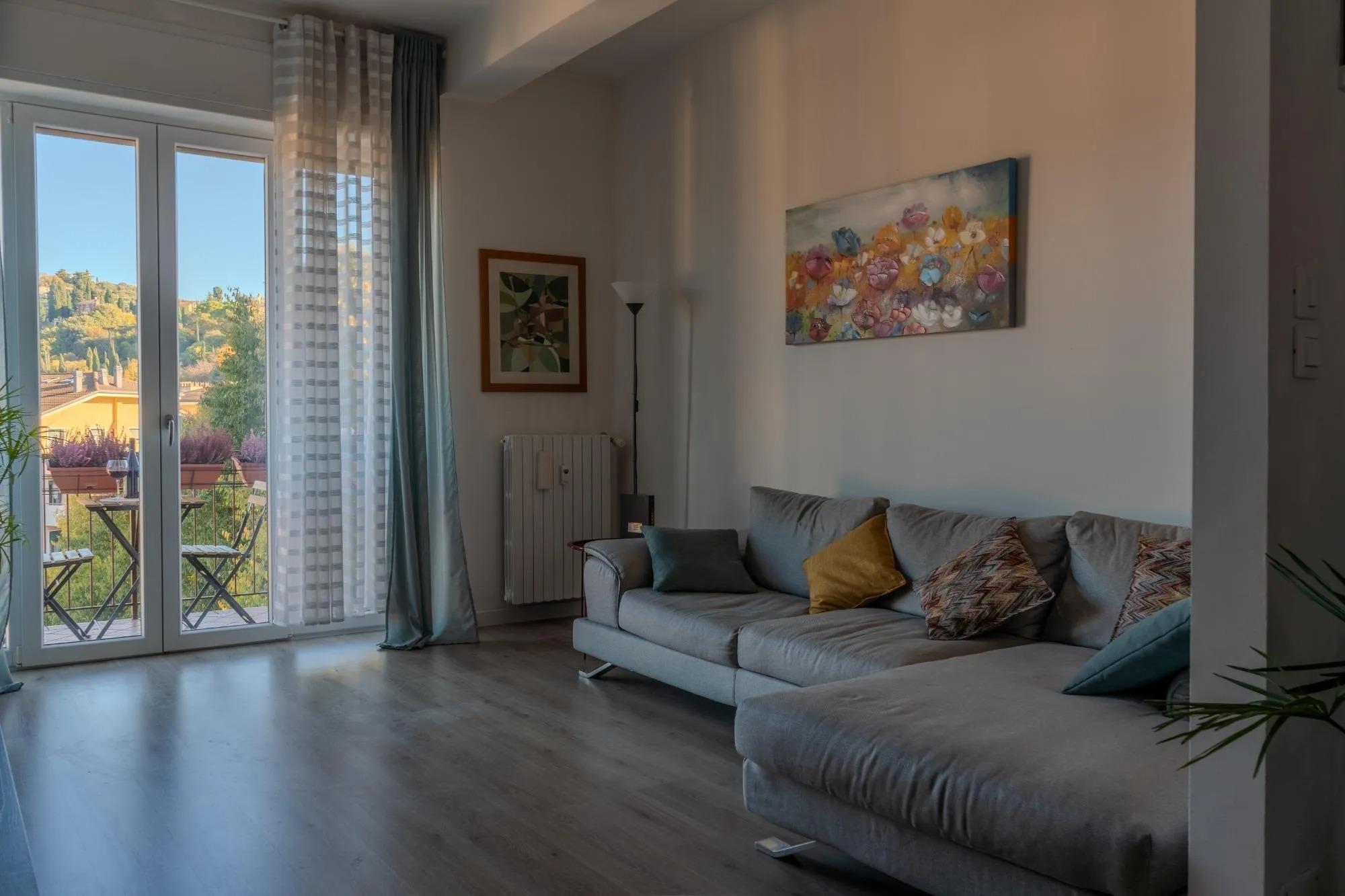 DolceVista Valpolicella è un appartamento elegante, a pochi chilometri dal centro storico di Verona, in un quartiere residenziale tranquillo, circondato dal verde, e alle porte della Valpolicella, terra di vini e panorami collinari. Completamente ristrutturato e arredato con gusto, offre ambienti luminosi e accoglienti, pensati per garantire il massimo comfort.