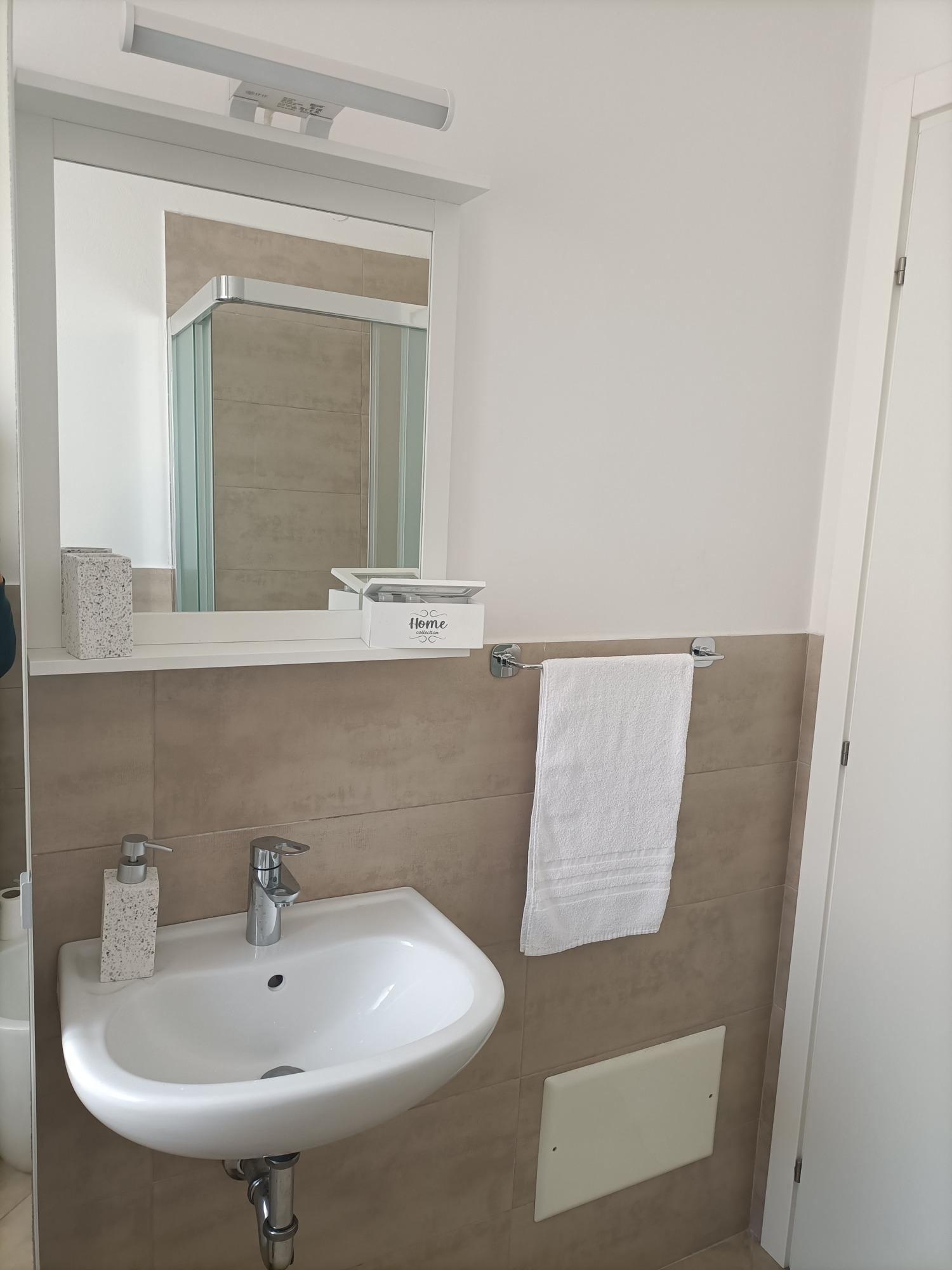 Il bagno è dotato di doccia, bidet, lavatrice, asciugacapelli e set di cortesia.